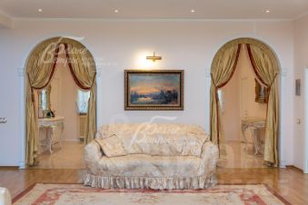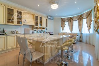 Мебель, оборудование: все комнаты укомплектованы роскошной итальянской мебелью в классическом стиле или барокко. Установлен кухонный гарнитур со столешницей из натурального гранита со встроенной газовой плитой, встроенная духовка и микроволновка BOSH, холодильник LIEBHERR, полубарный остров со столом и стульями 4 шт., обеденная группа из массива дерева. Большое арочное зеркало в холле, телевизоры, диваны, изящные журнальные столики и консоли и комоды. В двусветной гостиной многоярусная хрустальная люстра, окна украшены шторами с ламбрекенами, на полу ковер..