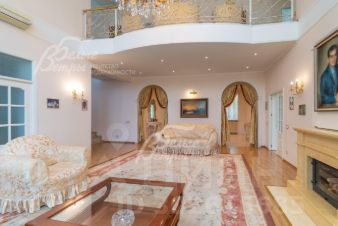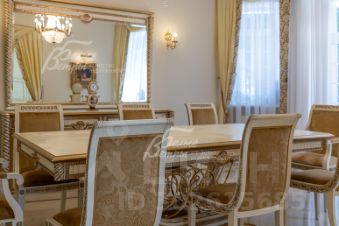 Код объекта в БД Агентства: 316-959. Согласие-1 к/п. Красивый и солидный дом в классическом стиле, с премиальной отделкой и мебелью. На участке также с гараж на 2 автомобиля с квартирой для персонала и домик для приема гостей с теплой отапливаемой кухней-столовой и летней зоной барбекю. В доме эффектная двухсветная гостиная, бильярдная со столом максимального размера, кинозал, сауна с купелью. Шикарный облагороженый участок с множеством взрослых деревьев - плодовых и декоративных. Статусный востребованный поселок с центральными коммуникациями.
