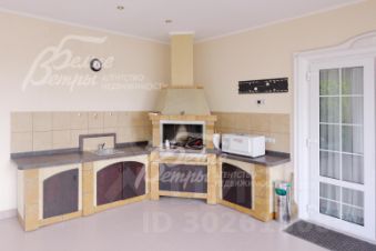 - Домик для приема гостей 73,2 кв.м, капитальный, всесезонный, в стиле основного дома, с отапливаемой частью ок.40 кв.м (отапливается электричеством - теплые эл. полы и конвекторы, окна ПВХ, мягкая кровля), в которой полностью оборудованная мебелью и техникой кухня-столовая, кладовая, гостевой санузел и неотапливаемой крытой незастекленной частью - с мангалом. В обеих частях - электричество, водопровод, канализация. Итальянский кухонный гарнитур со встроенной техникой, обеденная зона, кондиционер Panasonic..