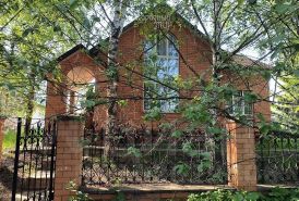 Участок. 14 соток утопает в зелени. На нем расположен гараж на одну машину с навесом, баня и просторный хозблок 114 кв.м. По фасадной части участок огорожен красивым кованым забором на кирпичных столбах, въездные ворота также кованые. Вдоль забора и на самом участке растут много лесных деревьев: березы, сосны, ели, рябины. На участке есть второй въезд с воротами.