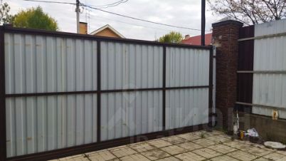 Участок огорожен забором, вокруг дома и парковочные места выложены тротуарной плиткой, откатные ворота.