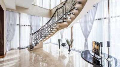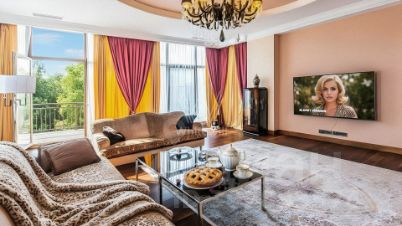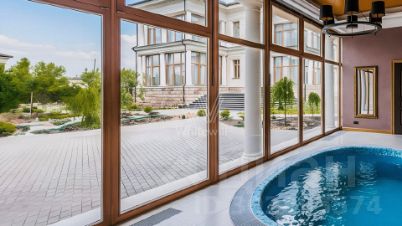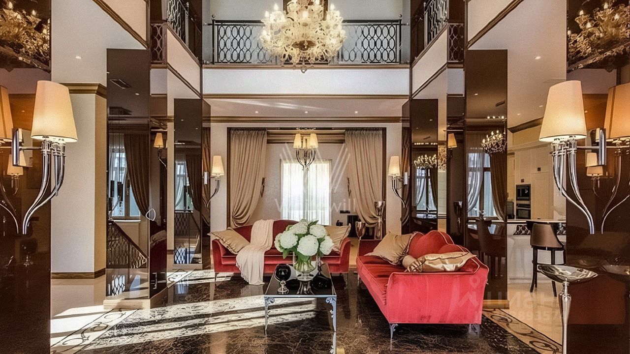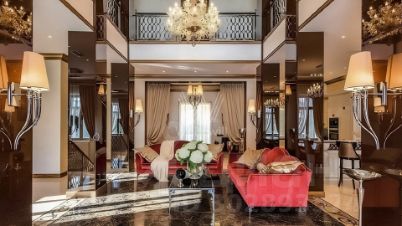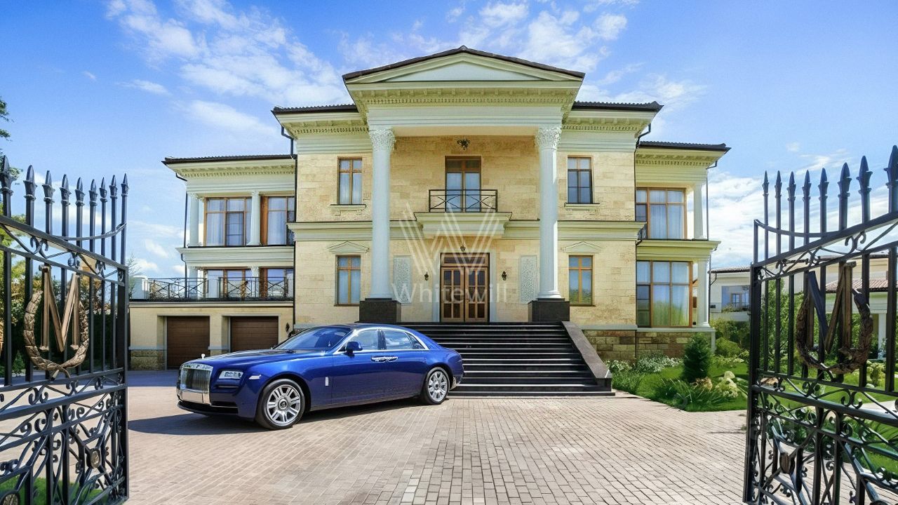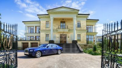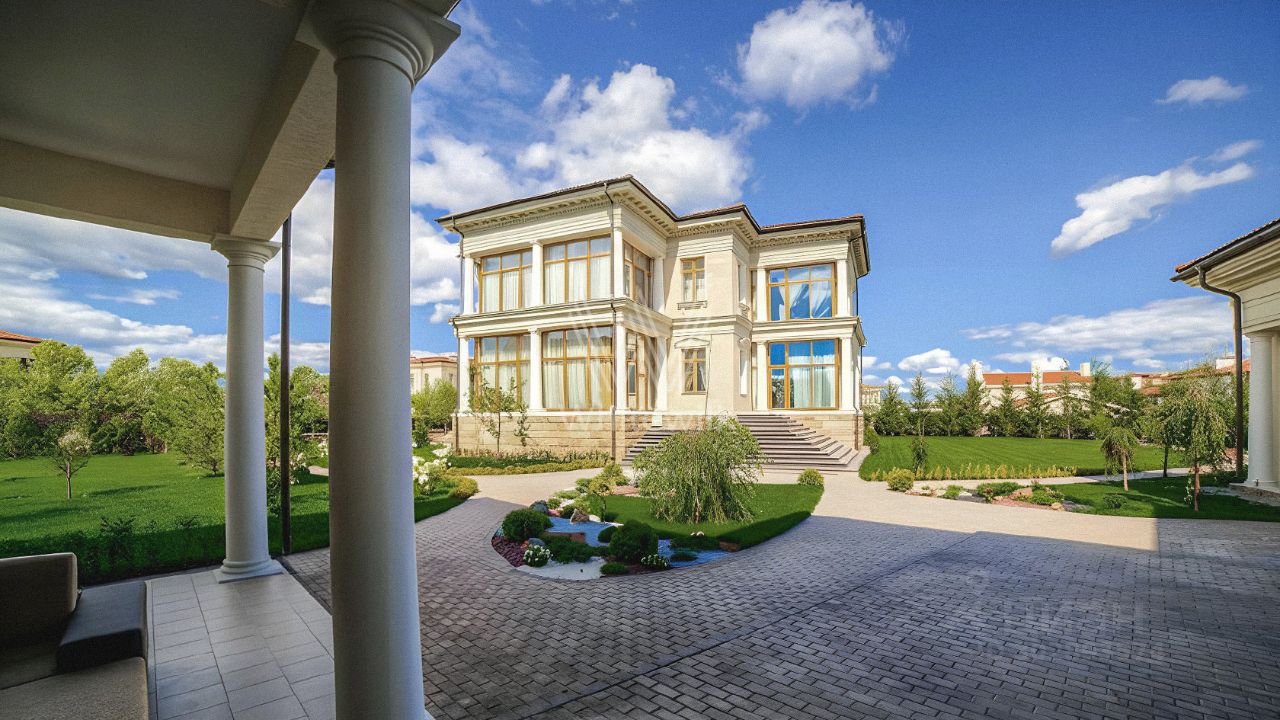 Монолит. Комплекс из главного дома 900 м² и гостевого дома 450 м² расположен на участке 35 соток с ландшафтным дизайном. Главный дом облицован травертином и украшен колоннами в классическом стиле. Интерьер выполнен в стиле "Ар-деко" с использованием натурального камня и ценного дерева. На полу панно из нескольких видов мрамора. Полы второго этажа из нескольких сортов массива. В парадной двухсветной гостиной установлен камин, расставлена итальянская мебель Vissionere и установлены люстры Baroviere&Tosso. Белая кухня фирмы Arca укомплектована европейской техникой. В санузлах установлена дизайнерская сантехника Vissionere.