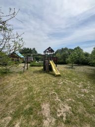 На участке: беседка, детская горка с домиком, баня 3,5 на 5 с печью на дровах,