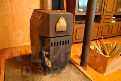 На первом этаже - открытая терраса, прихожая, просторная кухня-столовая, гостиная с металлической печью, санузел с горячим водоснабжением и сантехникой.