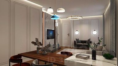 Основная зона: холл, гардеробная, просторная кухня-столовая-гостиная с выходом на террасу, с/у;