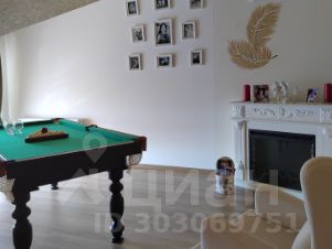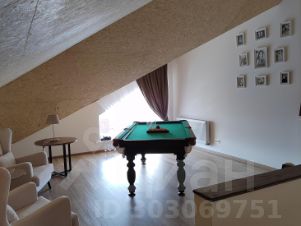 мансарда 52 м с вертикальным остеклением, разделена на две зоны: бильярдная с камином и комната отдыха с системой хранения.