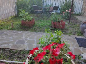 огороженный участок площадью 3 сотки, патио, крытое парковочное место и небольшой флигель для хранения инвентаря.