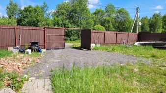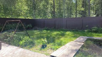 Продается земельный участок 15 соток, расположенный в тихом, уютном месте, в окружении лесного массива. Участок ровный, правильной формы, огорожен забором из профлиста, установленного на фундамент. По периметру участка оборудована дренажная система с отводом в специальный колодец. На территории участка установлен небольшой двухэтажный дом-баня, построенный строительной компанией Зодчий. На первом этаже расположена кухня-гостиная, душевая комната с санузлом, парная. На втором этаже две спальных комнаты. Дом подключен к системе управления "Умный дом". Имеется видеонаблюдение. Водоснабжение-скважина, канализация-септик. Электроэнергия 15 кВт. Газ проходит вдоль границы участка.