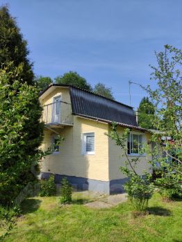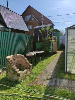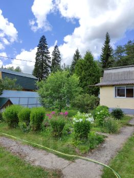 См.фото: участок ухоженный, огороженный забором (профнастил), на участке зарегистрированный двухэтажный дом 38,3 м2, отдельностоящая кухня 12 м2, собственный колодец, насосная станция, водонагреватель на 80 л, давление воды отличное, подача воды на кухню. Парковочное место для автомобиля на территории участка. Участок находится на высокой точке, весной не затапливает. В 4-х-5-ти минутах езды магазин "Дикси", спортивно-развлекательный комплекс.