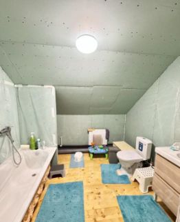 На участке построен второй дом площадью 100 кв м с мансардным этажом без отделки, можно использовать по любому назначению, гостевой дом, баня, гараж с мансардным этажом.