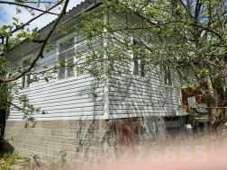 5. Строения: А) двухэтажный деревянный дом (1-й этаж из брус, 2-й этаж - щитовой), общей площадью 73 кв.м - 1-й этаж: комната (8 кв.м) с печкой, небольшая кухня, закрытая веранда (17 кв.м), небольшая открытая веранда (около 4 кв.м), 2-й этаж: комната 15 кв.м.