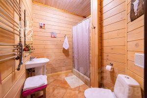 Дом полностью готов для круглогодичного проживания. Центром притяжения дома является просторная гостиная-столовая со вторым светом и панорамными окнами с красивыми видами на благоустроенный внутренний двор и лес.