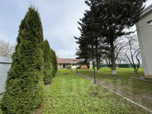На территории -сад (яблони,груши,вишня,малина),ландшафт из туй,газона и освещенных фонарями дорожек.
