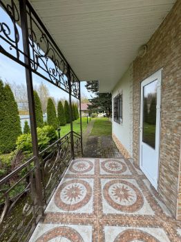 К продаже предлагается новый двухэтажный дом с подвалом площадью 153 кв.м на 52 сотках земли,окруженный лиственными и хвойными деревьями.