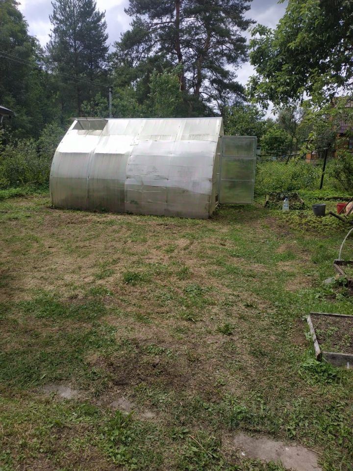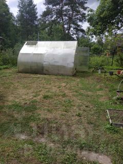 Участок сухой, обработан. Грядки, кусты, деревья есть. Стоит классическая теплица 3*4м, крыша в форме терема, снегоустойчивая.