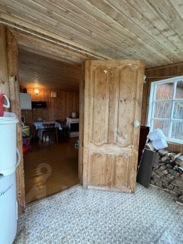 Планировка дома: при входе сделана терраса кухня, на лево проход в гостиную, где смонтирована печь-камин. Далее из кухни лестница на второй этаж с двумя раздельными комнатами. В кухне имеется подвал для хранения солений и варенья.