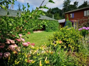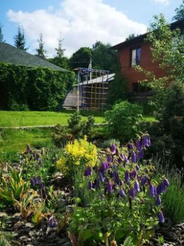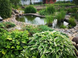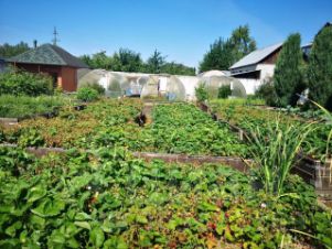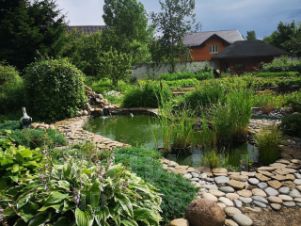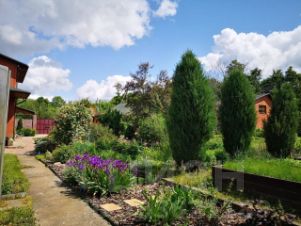 Участок правильной формы, 26 соток. Ровный, сухой с ранней весны, дренаж. Ухоженный, выполнен ландшафтный дизайн, в т.ч. декоративный пруд с рыбками. Плодовый сад. Дорожки и площадки вымощены природным камнем. Есть зона огорода с высокими грядками, два парника, авто полив по периметру участка. Оборудована детская площадка со спортивным комплексом.