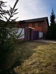 На участке расположены баня (47м2) с террасой, а т.ж. двухэтажный гараж(100м2) на два машиноместа, яма, на втором этаже гостевая комната. Выезд автоматические ворота, видеонаблюдение по всему периметру. Капитальный забор. Удобное транспортное сообщение. Круглогодичный подъезд..