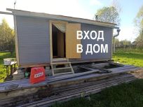 Внутри дом разделен на 4 комнаты (см. план): прихожую, кухню, спальню и кладовку. Вход в кладовку сделан отдельной дверью с улицы, чтобы не было соблазна грязные инструменты нести через чистые жилые помещения.