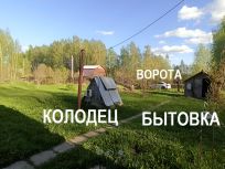 На участке есть пара яблонь, груша, несколько кустов смородины, крыжовника, жимолости, облепихи и черноплодки плюс несколько грядок и несколько разборных теплиц.