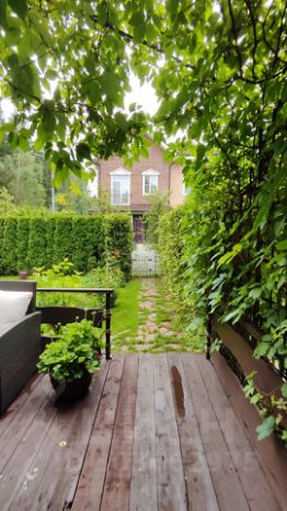 Перед домом два парковочных места. Участок облагорожен, имеется терраса.