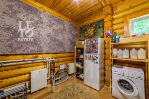 Участок с домом имеет свой выход в лес, что дает возможность не только наслаждаться природой, но и быть в дали от городского ритма. На выходе в лес расположился небольшой пруд, что открывает дополнительное место для отдыха. Дом выполнен из оцилиндрованного бруса, сделан теплый шов. При строительстве дома применялась технология ленточного фундамента. Крыша выполнена из черепицы Brass. К дому заведены все необходимые коммуникации (газ, вода, электричество, канализация). У электричества 2 источника питания + генератор.
