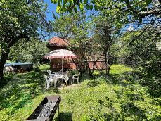 Несколько пихт с соседнего участка дополнительно дают прохладу в жаркие дни.