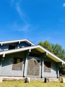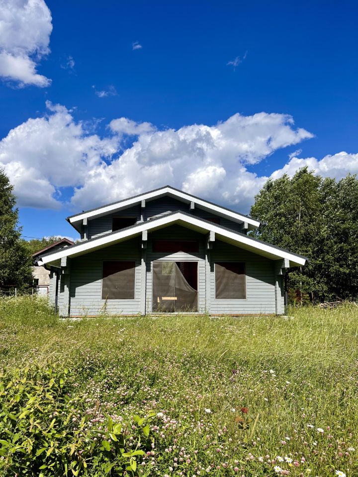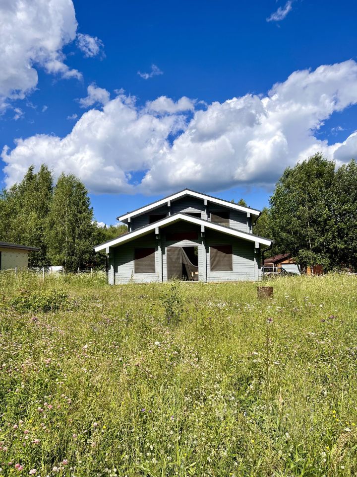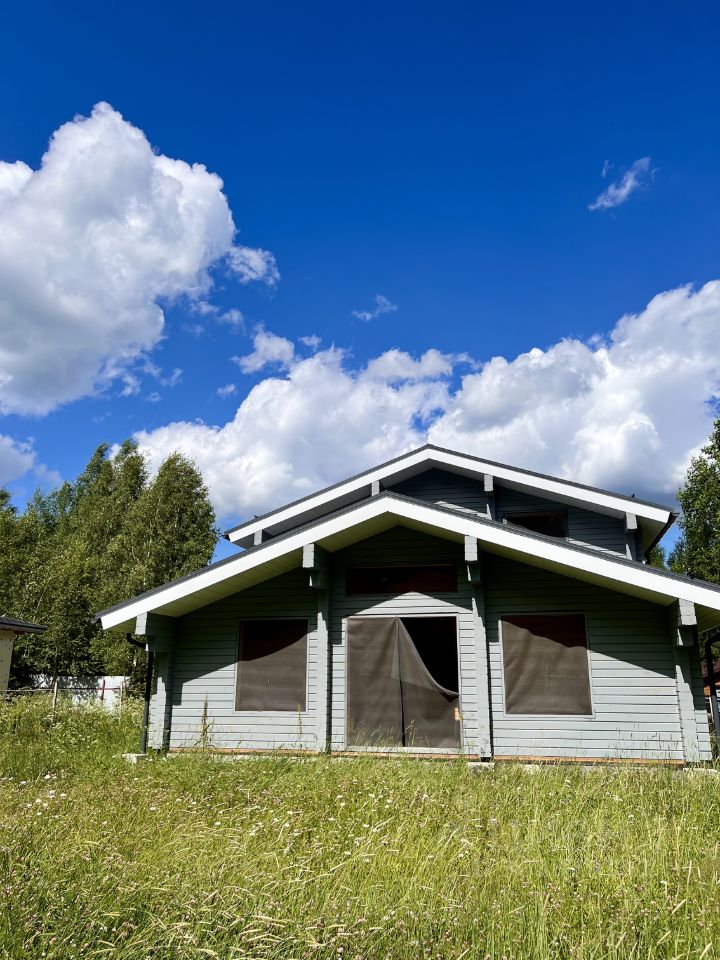 Продается большой участок с домом 123 кв. м на этапе незавершенного строительства (тип фундамента - мелкозаглубленный ростверк с монолитной плитой по нему, полностью возведены стены, крыша, полностью окрашен). Дом построен по проекту Стокгольм 123 кв. м из профилированного бруса.