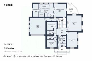 Лот 57476. Дом под ключ 410 кв.м. на участке 15.63 соток. Количество спален: 4.