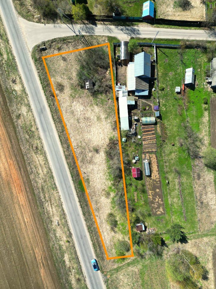 20 соток, самый первый на живописной улице (фото и видео улицы выше). Все коммуникации для строительства есть.