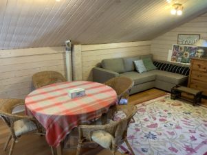 2. Летний гостевой домик 24 кв.м. Кухня-спальня, установлены чугунная дровяная печь Breneran (Бренеран) и настенный обогреватель, закрытая душевая кабина Tivoli с радио и гидромассажем, бойлер NRG Термекс на 100л.