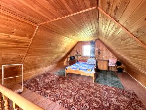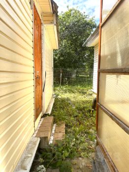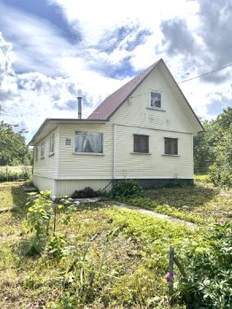 Участок огорожен, ровный, имеет правильную форму, ухожен, немного плодовых деревьев. Дом удобно расположен, асфальтовая дорога до границ участка, в шаговой доступности небольшой ухоженный деревенский водоем. Небольшая парковка перед домом.