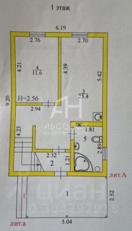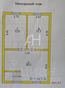 Второй этаж: проходная комната (20.6 кв.м.), две изолированные (12 и 11.7 кв.м).