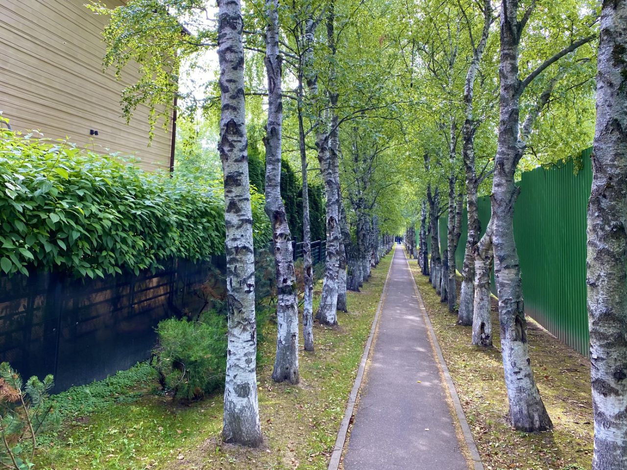 Расположен в дальней части приватной улицы. Примыкает к парковой аллее с возможностью сделать свою калитку в парк.
