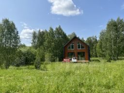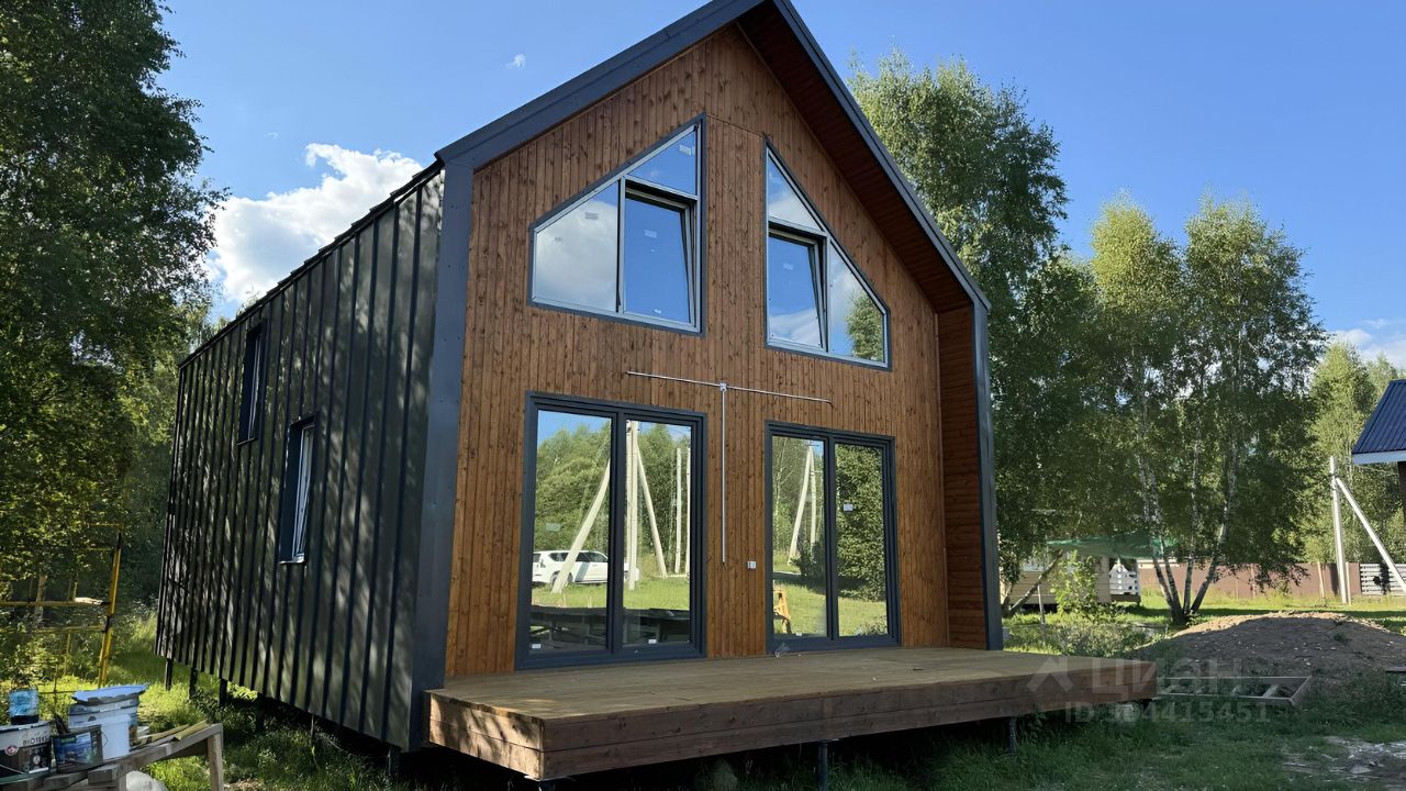 Дом с функциональной и уютной планировкой: просторная гостиная с кухонным блоком, 4 спальни, гардеробная, 2 санузла, терраса 17,5 м. Высота потолков от 2,9 до 4 м. качественная внутренняя отделка, оборудуются все коммуникации - электричество, водоснабжение, канализация. Вид на лес.