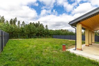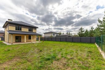 8 соток, прямой, правильной прямоугольной формы. Полностью огорожен забором. На участке предусмотрена парковка на 2 автомобиля, установлены откатные ворота.
