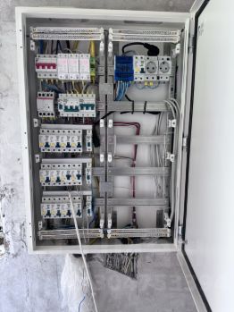Электричесвто - 15кВт. Проведена вся электрика по дому, подключены 3 электро щитка на каждом этаже, заложен кабель под видеонаблюдение.