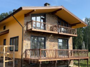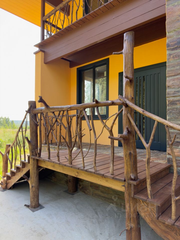 Балконы и терраса выполнены из лиственницы, покрыты маслом.