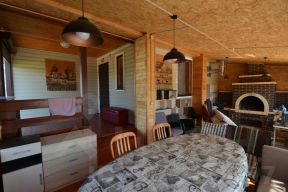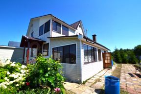Выполнен по каркасной технологии с утеплителем 150 мм базальтовыми плитами Роквул (стены, полы, крыша). Каркас из обрезной доски камерной сушки 150 мм, на ленточном фундаменте глубиной 1,4 метра. Снаружи дом обшит сайдингом. Внутренняя отделка - вагонка (стены, потолок обработаны и покрашены). Межкомнатные двери - деревянные, входные - металлические. Окна двухкамерные стеклопакеты (пвх) с поворотным механизмом и москитными сетками. Кровля профлист.