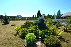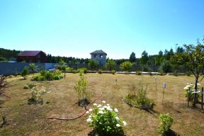 Участок 20 соток, огорожен по периметру забором из евро штакетника. Оборудована калитка и ворота для въезда на участок, а также площадка для стоянки автомобиля. Территория выложена плиткой. Сам участок ровный, прямоугольной формы, расположен на возвышенности, полностью спланирован и ухожен. Имеется теплица, дровник, грядки облагороженные, множество насаждений.