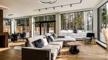 Проект Делайт. Высокие потолки, монолит\кирпич, дровяной камин, большая терраса, центральные коммуникации, центральная система вентиляции и кондиционирования, алюминиевые стеклопакеты. Все дома сейчас под отделку. Чистовая и ключ под конкретного покупателя в оговоренные сроки и по смете. В чистовую отделку входит: готовые основные коммуникации и основы отделки, сети разведены по дому, теплые полы, умная котельная, водоочистка, подвод для электрокарнизов. В ключ входит кухня, техника премиум, сантехника, освещение. Мягкая мебель, текстиль также возможны, дополнительно к цене.