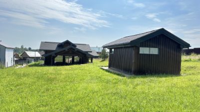 - баня, площадью 19 кв.м., размером 4х5 м, фундамент УШП 300mm с заведенными коммуникациями (утепленная магистраль отопления, водоснабжения ,электричество); Силовой каркас post and beam 400-450 mm, Стены каркас 100мм утепленные izoplat 25mm, Кровля 150мм утеплённая каменной ватой 50 плотности + izoplat 25mm. Покрытие - мягкая черепица Шинглас по осб 12; окна безрамное остекление + евро окна сосна 84мм; Фасад + подшивка кровли крашенная доска; отмостка вокруг + дорожка импрегнированная доска 34мм, отсыпка щебнем, сделан Дренаж + ливневка.