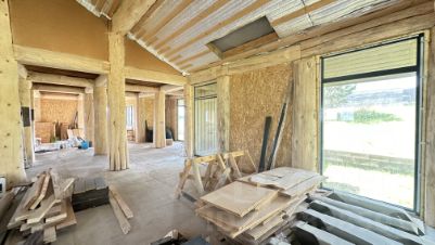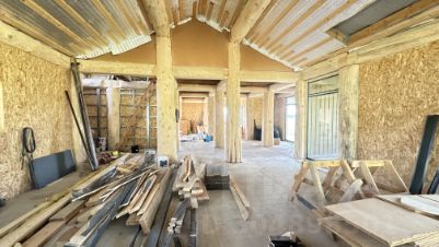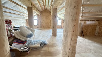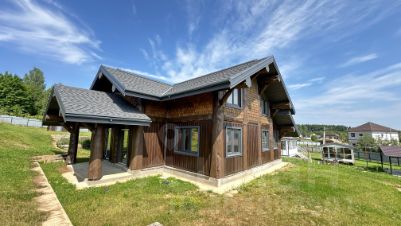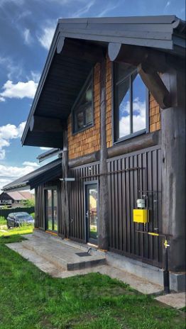 Дом 2022 г.п., 2-уровневый, общей площадью 240 кв.м., post and beam силовой каркас из бревна 500-850мм (возраст от 200 до 400лет (кировская сосна, зимняя рубка), стены каркас 150м с утеплением каменной ватой 50 плотности + Балтермо 25мм, мощный фундамент - монолитная плита 300 мм с дренажом (также утепленная отмостка и цоколь), Фасад + подшивка кровли крашенная доска, Кровля - 250м утепление по стропилам каменной ватой, а Покрытие мягкая черепица Шинглас по осб 12мм; окна ПЛАСТИК MELKE EVOLUTION 70 c энергосберегающими стеклопакетами, Теплый алюминий с раздвижными порталами и энергосберегающими стеклопакетами. По 1-му этажу теплые водяные полы от газового котла.