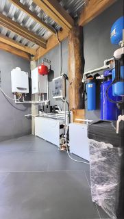 Коммуникации: вода собственная скважина на участке, глубиной 44 м с адаптером и заведенной водой в дом+система очистки, канализация септик Эргобокс 10 с дренажным полем, центральный газопровод, электричество 15 кВт (3 фазы) 380v с заведенным кабелем в дом, отапливается от газового котла.