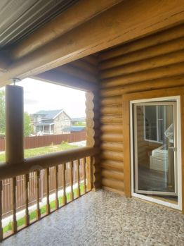 из оцилиндрованного бревна диаметром 240 мм (8 метров на 8 метров). Назначение: жилой дом.