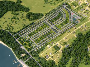 - променад и зелёная зона вокруг пруда на территории посёлка