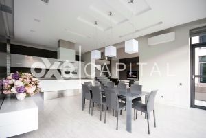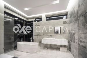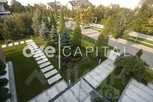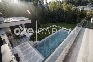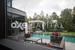 Резиденция оснащена системой противопожарной безопасности, беспроводными датчиками сигнализации и протечки воды. 1 этаж: коридор, гардеробная, гостевой санузел, кабинет, гостиная со вторым светом, кухня-столовая, подсобное помещение для кухни, постирочная, спа-зона ( 70 м2): коридор, санузел, сауна Tylo, мини-бассейн Teuco, комната отдыха с камином и барбекю , открытые терраса и бассейн , гараж 2 м/м, отдельный вход в квартиру для персонала: кухня-гостиная, спальня, душевая 2 этаж: основная спальня, с ванной и гардеробной, гардеробная для сезонных вещей, спальня детская с ванной комнатой и гардеробной, спальня детская с гостиной , ванной и встроенной гардеробной. Гараж: в контуре дома 2 м/м.