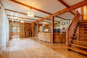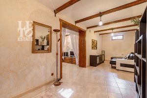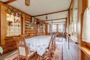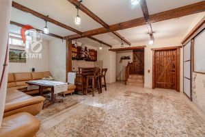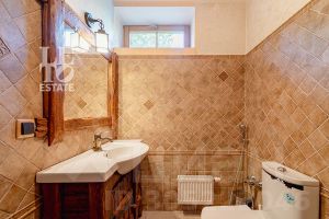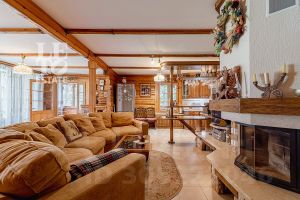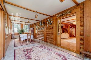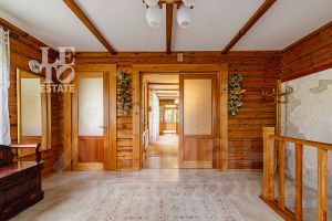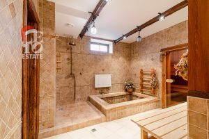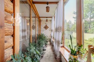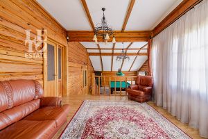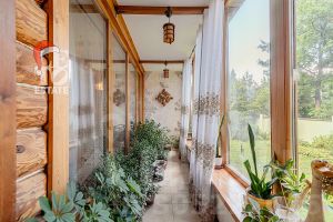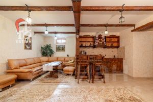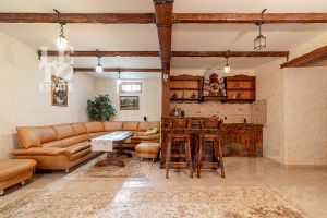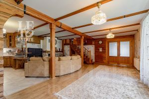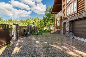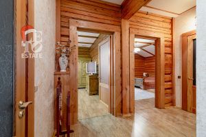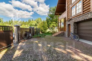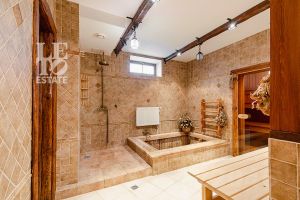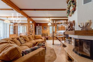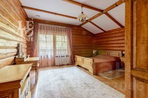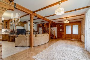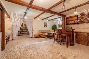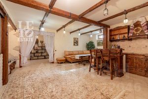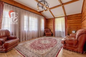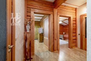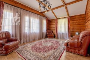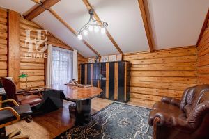 Дом построен из бруса: воплощение комфорта и уюта. Одним из основных достоинств дома является экологичность используемых материалов. Более того, в деревянном доме всегда создается уютная и теплая атмосфера, что благотворно влияет на здоровье и настроение. Брус обладает высокой плотностью и малой теплопроводностью, благодаря чему тепло внутри дома долго задерживается, а воздух не перегревается. Внутри дома используются только натуральные материалы, мебель выполнена на заказ. В доме разведены теплые полы, на цокольном этаже установлено кондиционирование. В доме сделана приточно - вытяжная вентиляция.