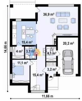 Кухня-гостиная -52.3 м2 с кладовой 4 м2 и выходом на террасу и во двор