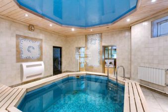 Цокольный этаж: гардеробная-кладовая, котельная, постирочная комната, мини кухня, санузел, баня-парная, глубокий бассейн, зона для отдыха;